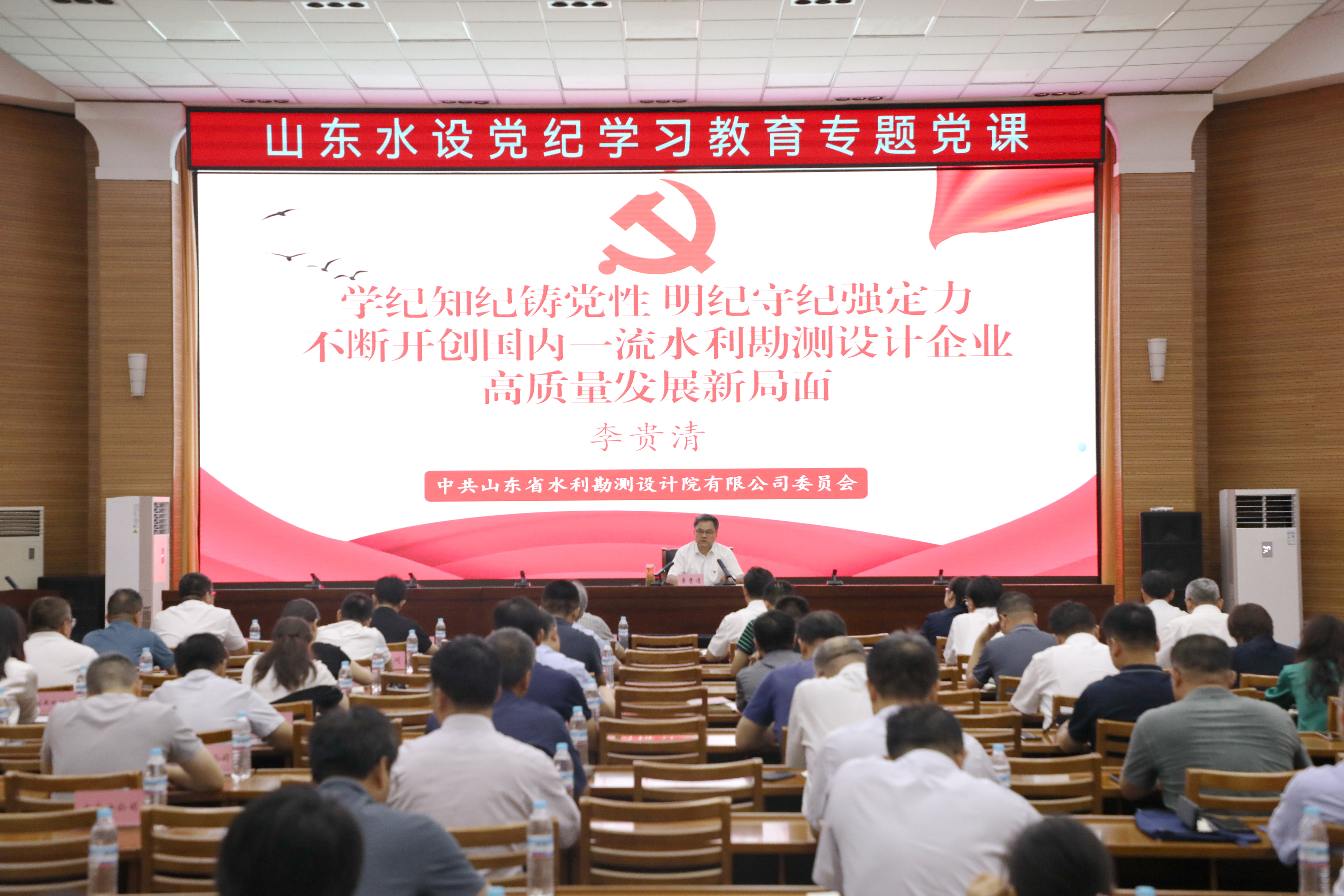在中國(guó)共產(chǎn)黨成立103周年之際,為深入推進(jìn)黨紀(jì)學(xué)習(xí)教育走深走實(shí),認(rèn)真學(xué)習(xí)貫徹習(xí)近平總書(shū)記關(guān)于全面加強(qiáng)黨的紀(jì)律建設(shè)的重要論述及視察山東重要講話(huà)精神,7月1日,山東省水利勘測(cè)設(shè)計(jì)院有限公司黨委副書(shū)記、董事、總經(jīng)理李貴清(主持公司全面工作)以“學(xué)紀(jì)知紀(jì)鑄黨性、明紀(jì)守紀(jì)強(qiáng)定力 不斷開(kāi)創(chuàng)國(guó)內(nèi)一流水利勘測(cè)設(shè)計(jì)企業(yè)高質(zhì)量發(fā)展新局面”為題,為全體黨員講授專(zhuān)題黨課。