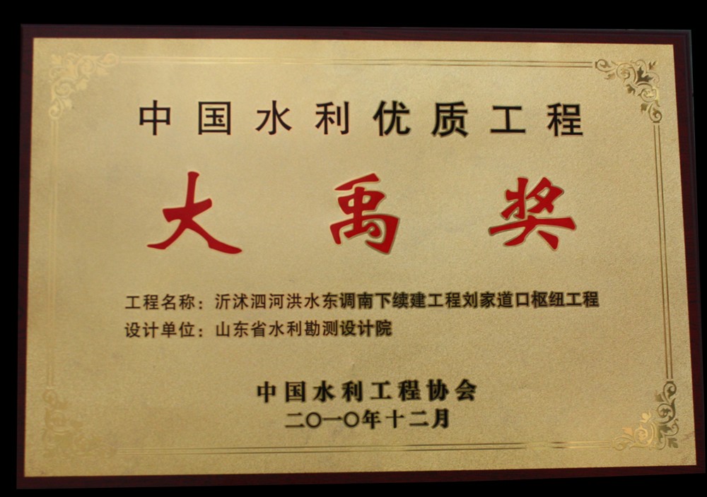 2010年中國水利工程優(yōu)質(zhì)大禹獎(jiǎng)-劉家道口樞紐工程