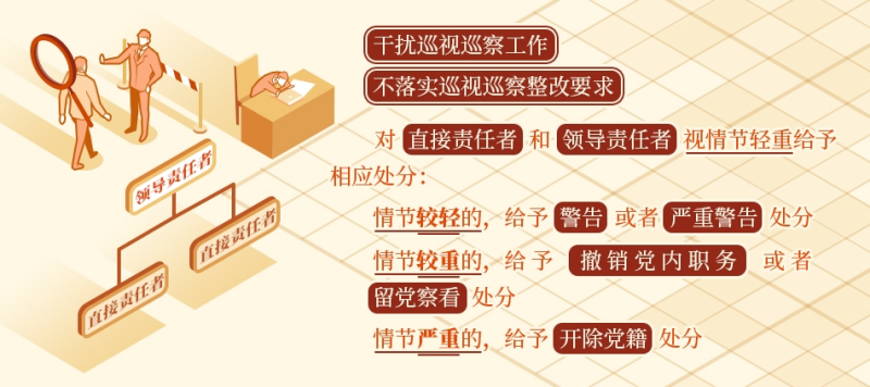 《中國共產(chǎn)黨紀律處分條例》規(guī)定,干擾巡視巡察工作或者不落實巡視巡察整改要求,屬于違反政治紀律的行為,對直接責任者和領導責任者,視情節(jié)輕重給予相應處分。情節(jié)較輕的,給予警告或者嚴重警告處分;情節(jié)較重的,給予撤銷黨內(nèi)職務或者留黨察看處分;情節(jié)嚴重的,給予開除黨籍處分。