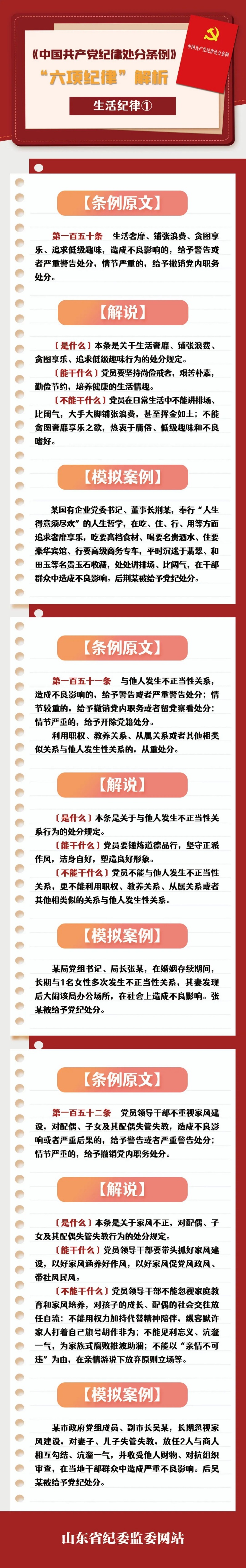 《中國(guó)共產(chǎn)黨紀(jì)律處分條例》“六項(xiàng)紀(jì)律” 解析丨生活紀(jì)律①