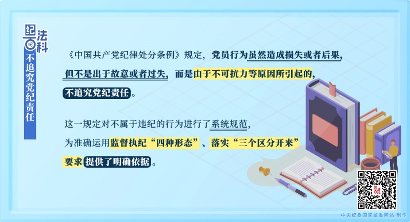 《中國(guó)共產(chǎn)黨紀(jì)律處分條例》第十九條第三款規(guī)定:“黨員行為雖然造成損失或者后果,但不是出于故意或者過失,而是由于不可抗力等原因所引起的,不追究黨紀(jì)責(zé)任。”