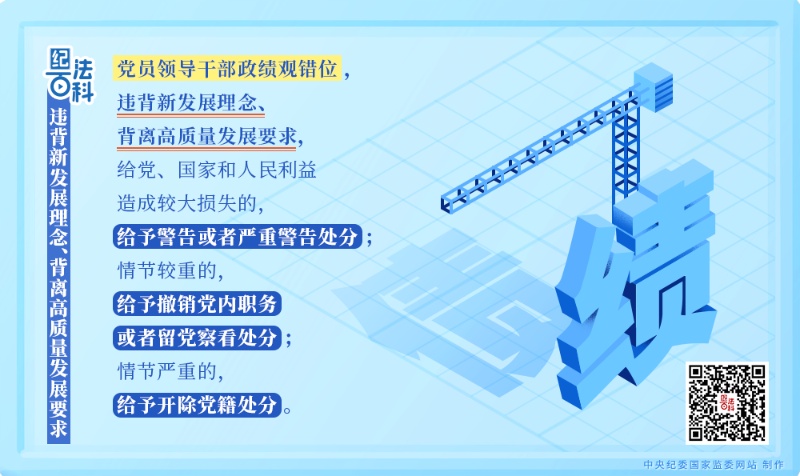 《中國共產(chǎn)黨紀(jì)律處分條例》第五十七條規(guī)定:黨員領(lǐng)導(dǎo)干部政績觀錯位,違背新發(fā)展理念、背離高質(zhì)量發(fā)展要求,給黨、國家和人民利益造成較大損失的,給予警告或者嚴(yán)重警告處分;情節(jié)較重的,給予撤銷黨內(nèi)職務(wù)或者留黨察看處分;情節(jié)嚴(yán)重的,給予開除黨籍處分。