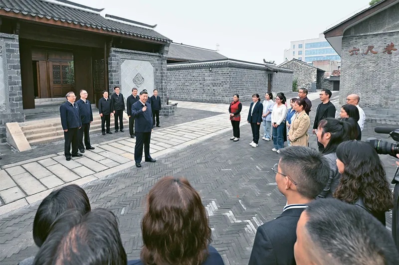 2024年10月17日至18日,中共中央總書記、國家主席、中央軍委主席習(xí)近平在安徽考察。這是17日下午,習(xí)近平在安慶桐城市六尺巷考察時,同當(dāng)?shù)鼐用窈陀慰陀H切交流。新華社記者 申宏/攝