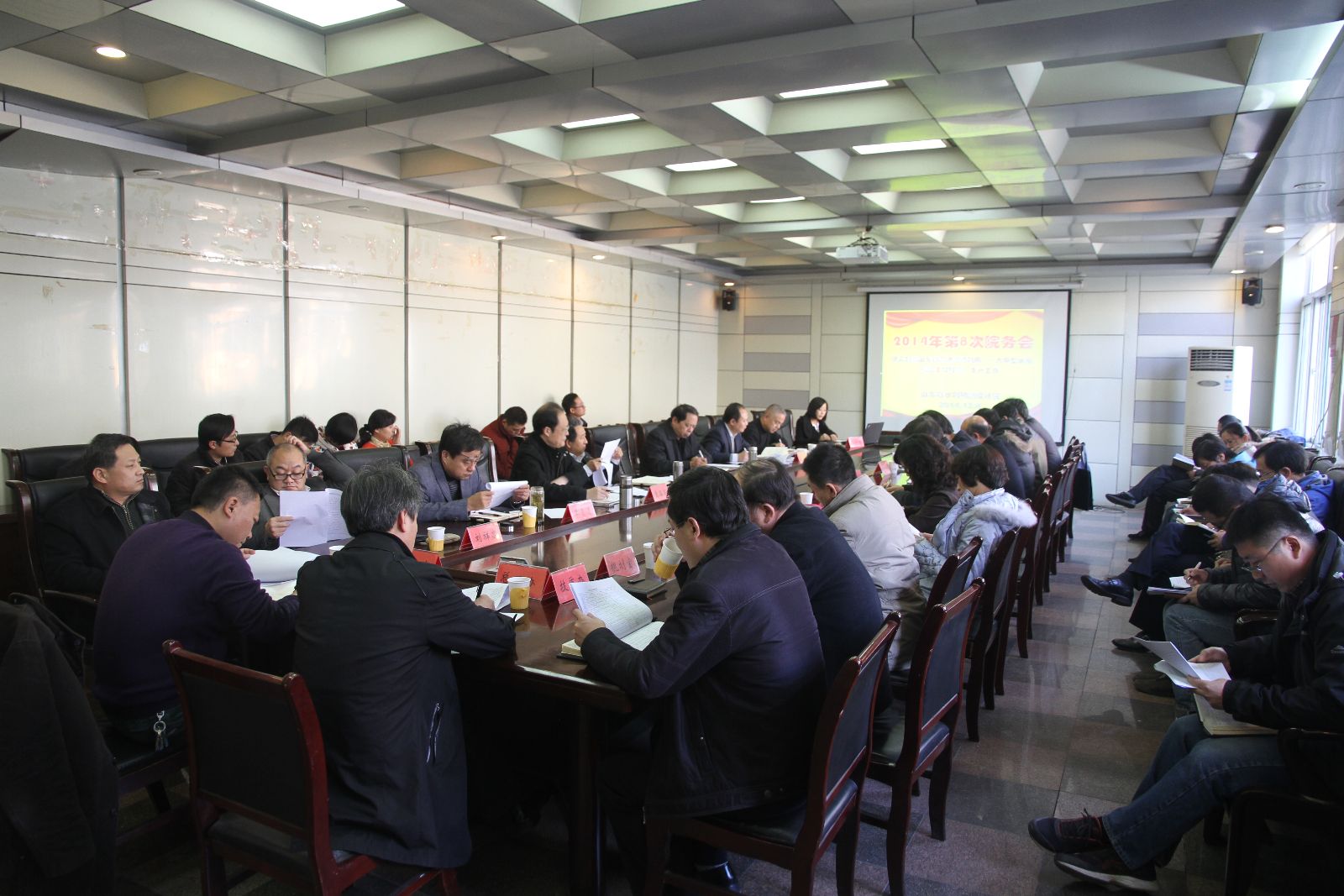 院領(lǐng)導(dǎo)劉長(zhǎng)余、尹起亮、董溫榮、李貴清、曹先玉,分管項(xiàng)目的總工,各相關(guān)科室主要負(fù)責(zé)人和各增容水庫(kù)工程的項(xiàng)目負(fù)責(zé)人共42人參加了會(huì)議。