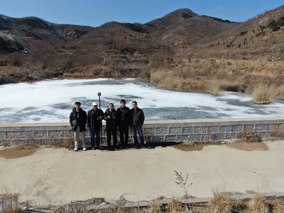 首日,項(xiàng)目組先到蓬萊區(qū)水務(wù)局詳細(xì)了解了本次排查任務(wù)。為了讓大家熟悉塘壩情況,水務(wù)局兩位負(fù)責(zé)人帶領(lǐng)項(xiàng)目組一同前往蓬萊區(qū)登州街道的2座塘壩,旨在確定后續(xù)排查任務(wù)中的重要隱患點(diǎn),統(tǒng)一記錄資料格式、記錄重點(diǎn)、影像資料等。2月中旬,蓬萊仍然是刺骨的冷。一到現(xiàn)場(chǎng),孫見鋒、邢仕強(qiáng)立即向水務(wù)局負(fù)責(zé)人了解塘壩基本情況,李子民、郭曉鎮(zhèn)使用無人機(jī)進(jìn)行拍攝,趙連濤、李宏達(dá)進(jìn)行建筑物高程及尺寸測(cè)量,吳春澍和瞿立新對(duì)現(xiàn)場(chǎng)關(guān)鍵問題進(jìn)行補(bǔ)充、指導(dǎo)。首日結(jié)束,項(xiàng)目組利用晚飯間隙對(duì)工作成果進(jìn)行了小結(jié),對(duì)第二天的工作進(jìn)行安排。