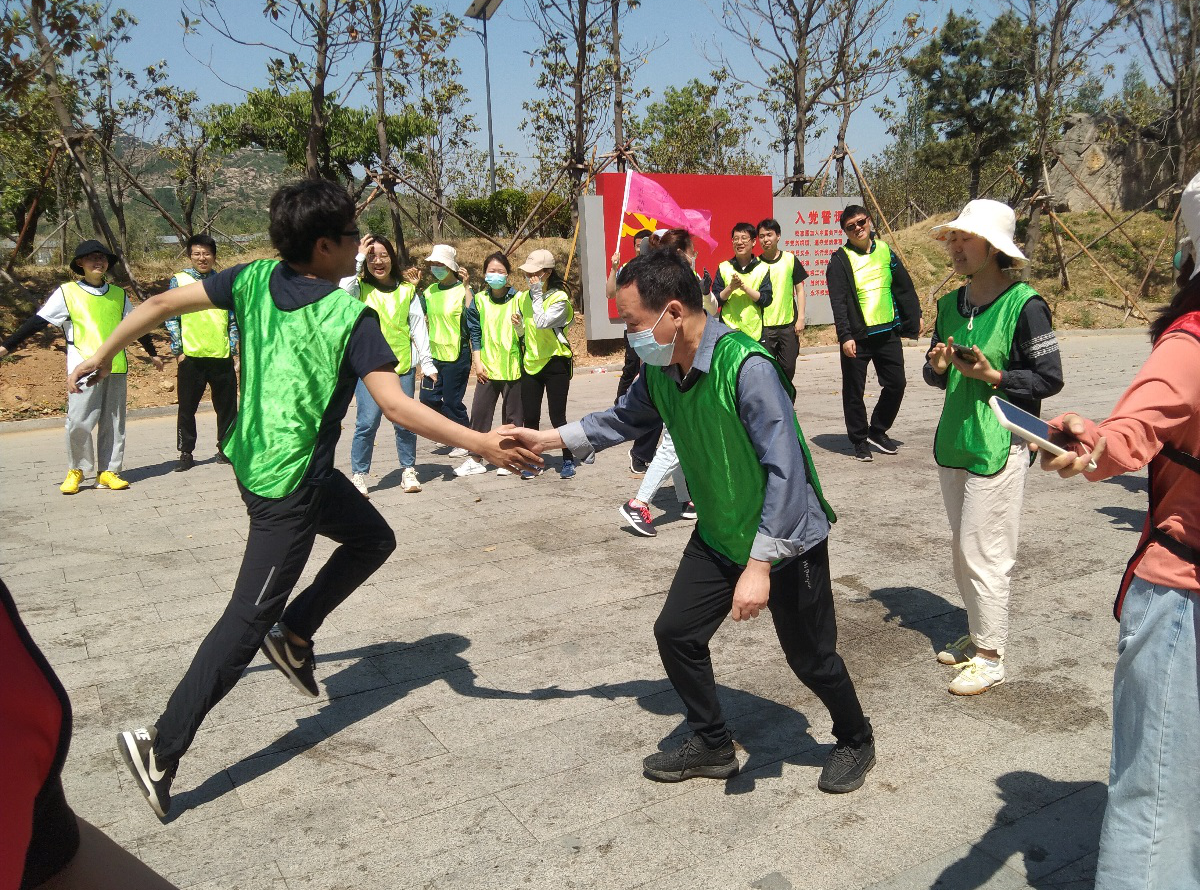 活動開始,由移民設計院副院長王建偉帶領全體黨員重溫入黨誓詞,同志們慷慨激昂,堅定了完成工作任務的信心。工作組52名成員隨機分成4個小隊,分別取名沂蒙山隊、井岡山隊、延安隊和西柏坡隊,并制定了隊旗、隊訓和隊歌,相繼開展了漢諾塔、高空斷橋、室內冰壺等趣味挑戰(zhàn)項目。在歡聲笑語和加油助威聲中,同志們挑戰(zhàn)了自我、釋放了壓力、收獲了樂趣、增進了了解,團建活動圓滿成功。