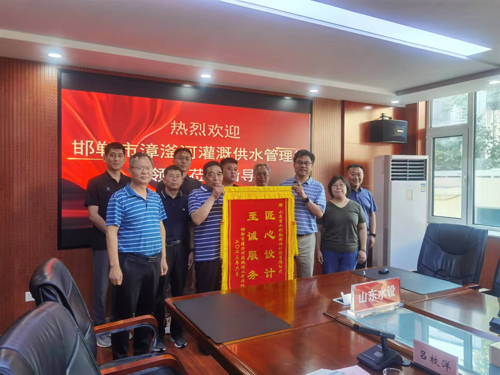 6月15日,邯鄲市漳滏河灌溉供水管理處建設(shè)處處長(zhǎng)胡文暉一行到訪山東水設(shè),并向公司贈(zèng)送錦旗,對(duì)我公司在邯鄲市漳滏河灌區(qū)“十四五”續(xù)建配套與現(xiàn)代化改造等項(xiàng)目中展現(xiàn)出來的高水平設(shè)計(jì)、高質(zhì)量服務(wù)表示感謝。公司黨委副書記、總經(jīng)理李貴清主持座談會(huì),公司總經(jīng)理助理張志闊及相關(guān)人員參加會(huì)議。