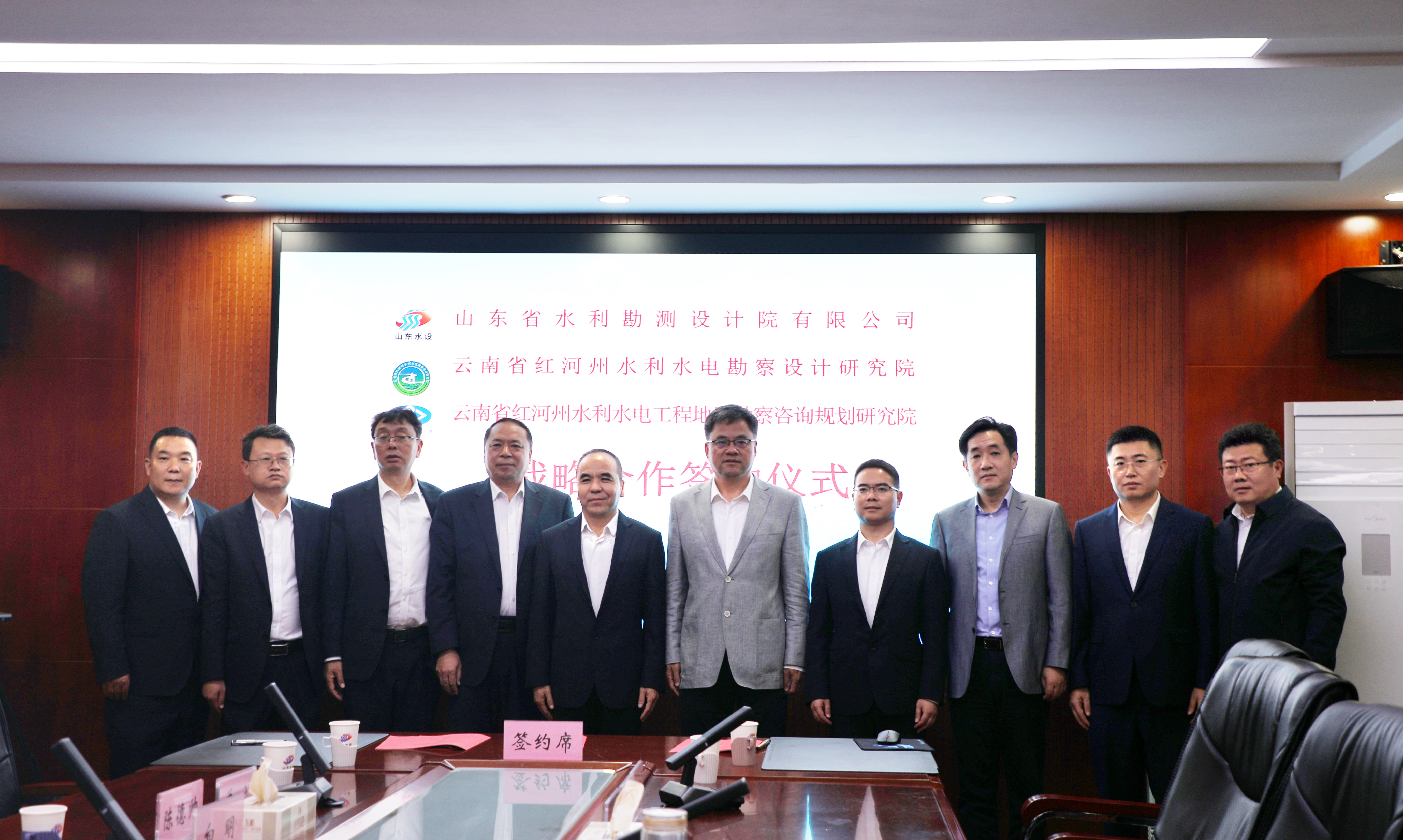 11月3日下午,山東省水利勘測(cè)設(shè)計(jì)院有限公司(以下簡(jiǎn)稱山東水設(shè))與云南省紅河州水利水電勘察設(shè)計(jì)研究院(以下簡(jiǎn)稱紅河州水勘設(shè)計(jì)院)、紅河州水利水電工程地質(zhì)勘察咨詢規(guī)劃研究院(以下簡(jiǎn)稱紅河州水利規(guī)劃院)戰(zhàn)略合作協(xié)議簽約儀式在濟(jì)南舉行。山東水設(shè)黨委副書記、董事、總經(jīng)理(主持公司全面工作)李貴清,山東水設(shè)黨委委員、副總經(jīng)理尹起亮,黨委委員、副總經(jīng)理戴小兵,黨委委員、副總經(jīng)理劉帥,紅河州水利局黨組成員、紅河州水勘設(shè)計(jì)院院長(zhǎng)段吉鴻,紅河州水利規(guī)劃院院長(zhǎng)張學(xué)森等出席簽約儀式。