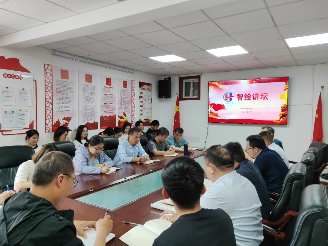 測繪院專業(yè)總工程師陳衍德以《全省測繪地理信息成果質(zhì)量檢驗人員培訓》為題,對測繪地理信息成果質(zhì)量檢驗培訓內(nèi)容進行宣貫。于志龍、張緒朋結合嶠山水庫庫容曲線復核測量項目專家審查會審查情況,開展水庫庫容曲線復核項目專題研討。王成華針對地形圖審查有關問題,進行交流討論。黨支部書記郭慶華要求大家,要加強黨建與業(yè)務的融合,持續(xù)辦好智繪講壇,為職工提供溝通交流平臺。