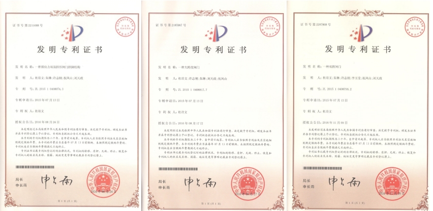 6.2022年10月,“新型大跨度拱形閘門技術(shù)研究與應用”獲得齊魯水利科技進步一等獎,并獲得3項發(fā)明專利。