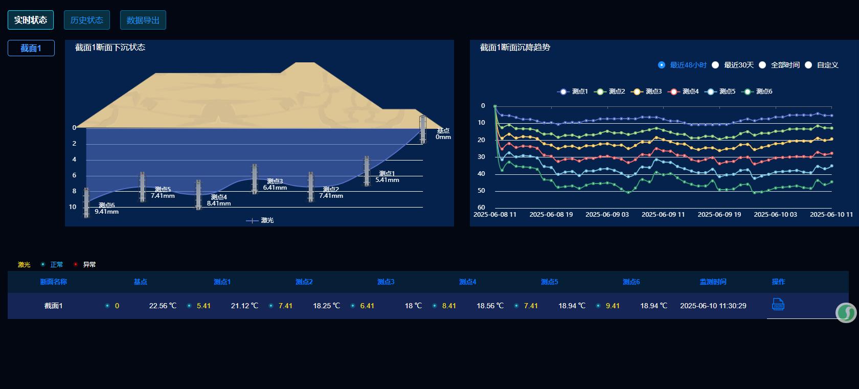 積極對(duì)接開(kāi)發(fā)下埋式激光-壓力雙模傳感融合的核心監(jiān)測(cè)設(shè)備,實(shí)現(xiàn)數(shù)據(jù)交叉驗(yàn)證與動(dòng)態(tài)校準(zhǔn),消除環(huán)境擾動(dòng),突破了傳統(tǒng)靜力水準(zhǔn)儀的局限性,能夠動(dòng)態(tài)追蹤堆載過(guò)程中的變形速率、趨勢(shì)及應(yīng)力響應(yīng),為堆載速率控制、卸載時(shí)機(jī)判斷、預(yù)壓效果評(píng)估提供數(shù)智化支持,有效保障施工安全與工程質(zhì)量。